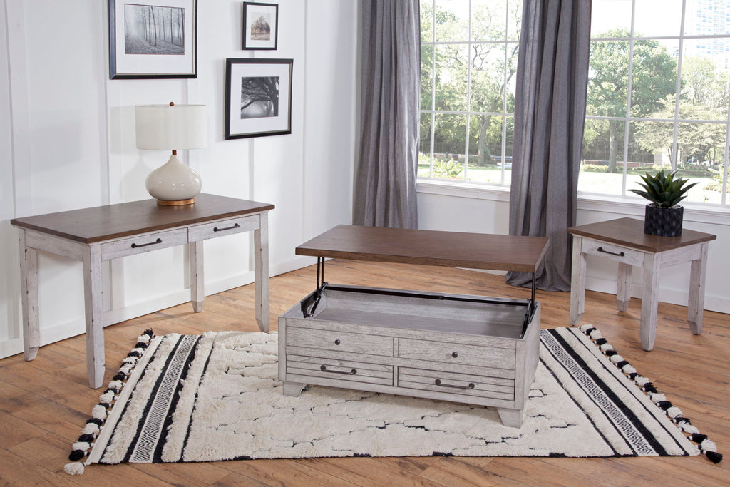 Perfect for your farmhouse-inspired home, Bear Creek tables offer just the right mix of casual and rustic-inspired designs to blend with today's decorating environments. The two-tone combination of white and honey smoke finish works well with any casual upholstery setting and features distressing that makes the tables look like vintage heirlooms in any room.
