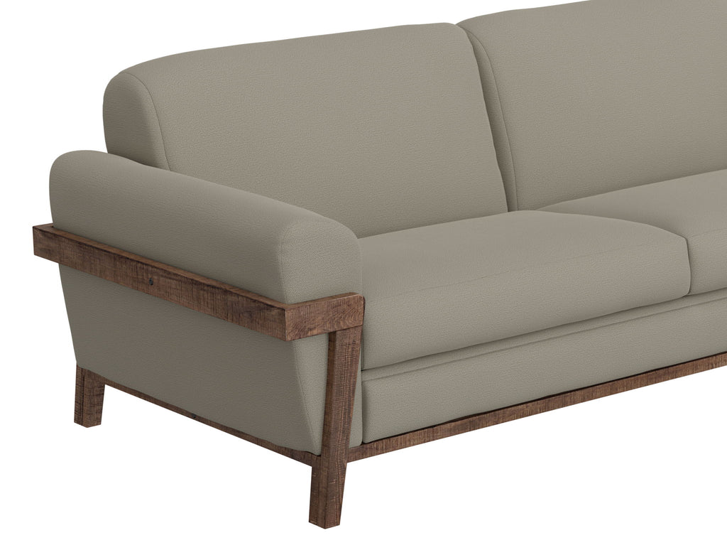 Wooden Frame & Base, Sofa. Introducing our captivating Loft Brown Collection, where traditional design seamlessly merges with mid-century modern details in this stunning transitional piece. With its distinctive exposed pine wooden legs and frame, retro-inspired rolled arms, and meticulous craftsmanship, this collection features solid wood and 15mm-thick, 5-layer plywood construction, ensuring both the strength and durability of the frames.