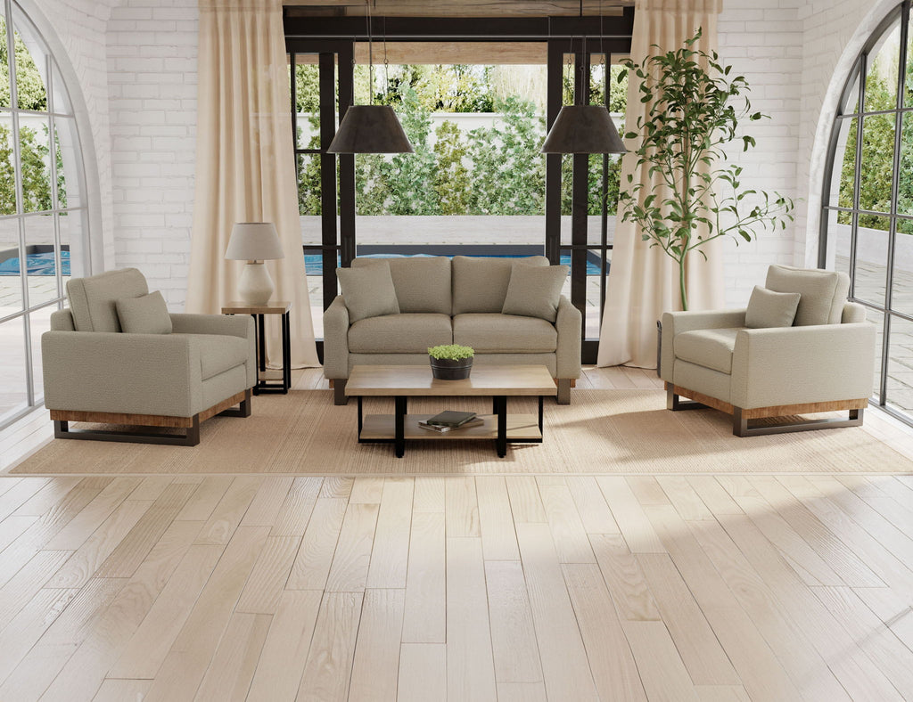 Metal & Wood Base, Loveseat. Bring comfort and style to your living space with the Mita Loveseat. This collection features a sturdy frame crafted from a combination of wood and metal, creating a seamless fusion of materials that radiates a contemporary aesthetic. The Mita Collection is your key to creating the ideal haven for gatherings and relaxation.