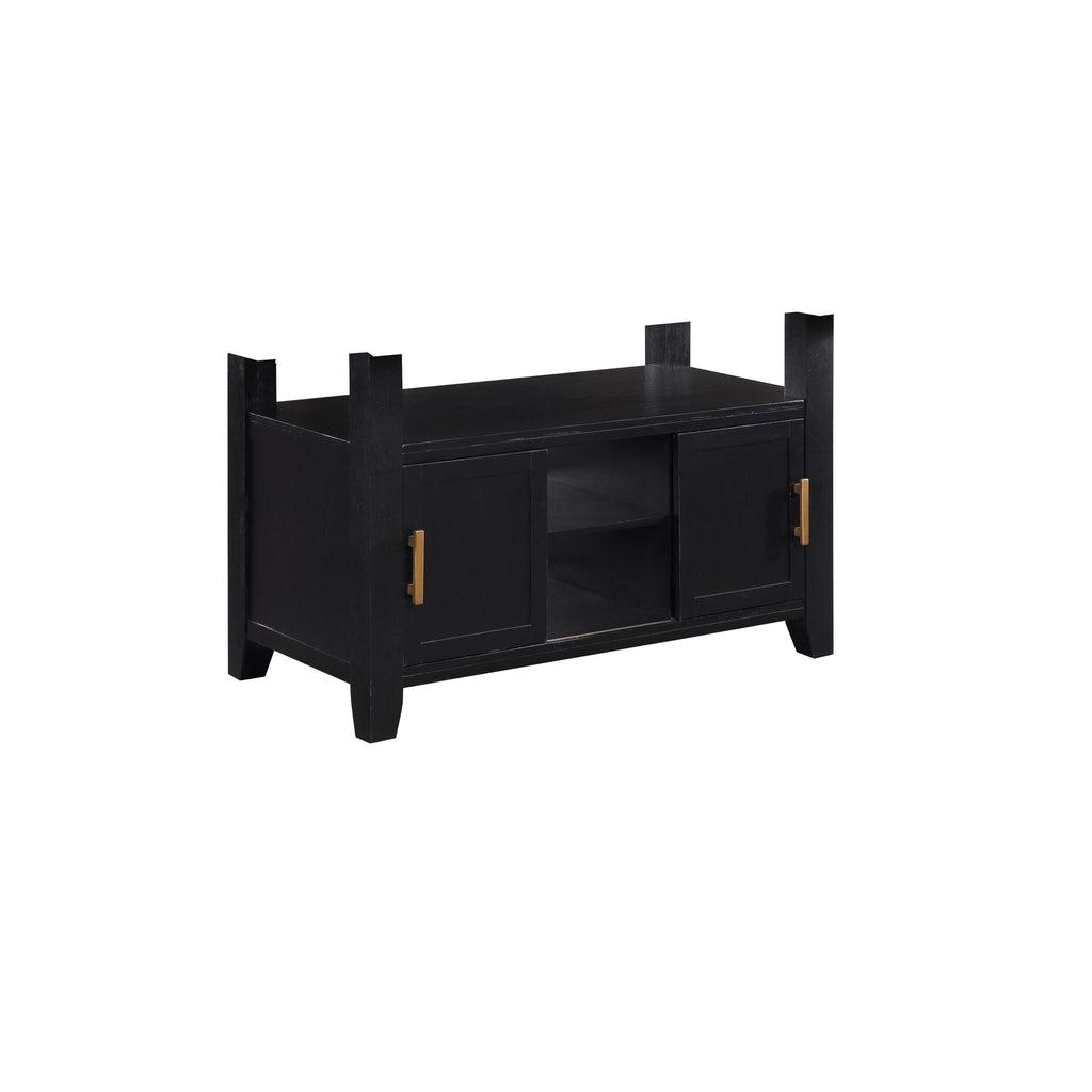 Storage is a valuable commodity in any dining room and the Yves Counter Storage Table provides a great functional centerpiece to any dining room. Modern style and a contrasting Black finish with oil rubbed brass accents makes for a sleek design statement as well as a great storehouse for China, placements, silverware or even homework. The 36-inch table height is ideal for preparing, dining or working.