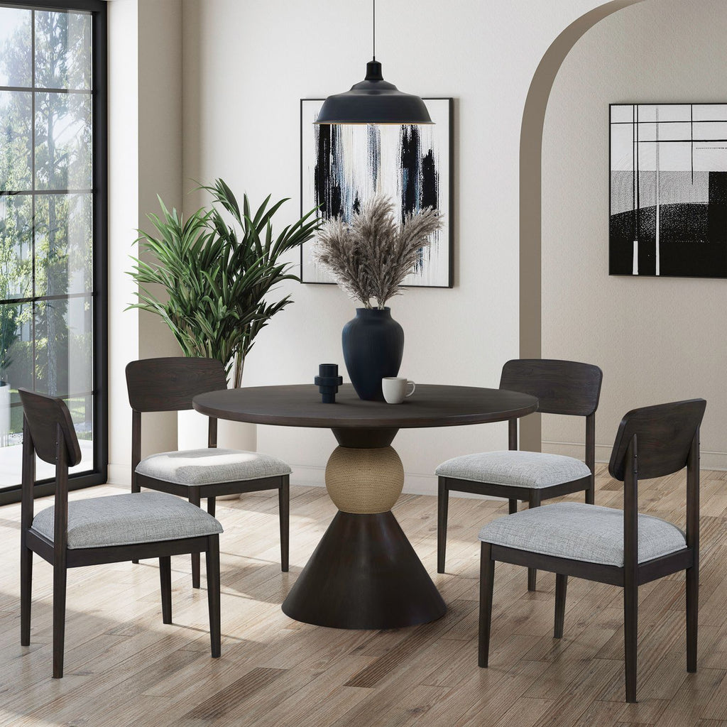 Shaped to charm, styled to stay, the Briarcrest casual dining is ideal for small spaces with a modern aesthetic. Featuring a soft chamfered top edge and a decorative bobbin base wrapped in Danish cord with a visually dramatic flare to the floor.