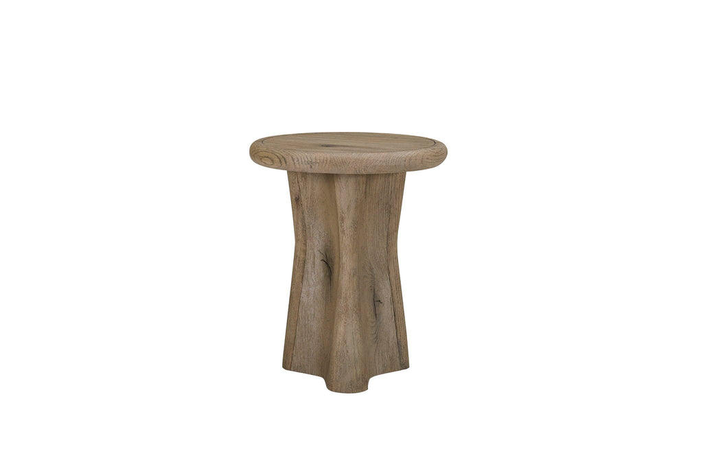 Pagosa Drop Accent Table The Pagosa Drop Accent Table is a sculptural statement piece that celebrates the natural beauty of wood through graceful, organic design. Expertly crafted with English Knotty Oak Veneers, this table showcases rich grain patterns and warm tones that bring depth and character to any setting. Its unique drop-shaped pedestal base flows seamlessly into a rounded top, creating a soft, fluid silhouette that feels both modern and timeless. Compact yet artful, the Pagosa Drop Accent Table serves as the perfect perch for a drink, a book, or a decorative piece — making it ideal beside a chair, sofa, or as a standalone accent. The combination of smooth curves and natural texture defines this piece as part of the Pagosa collection’s signature aesthetic — refined simplicity inspired by nature’s forms.